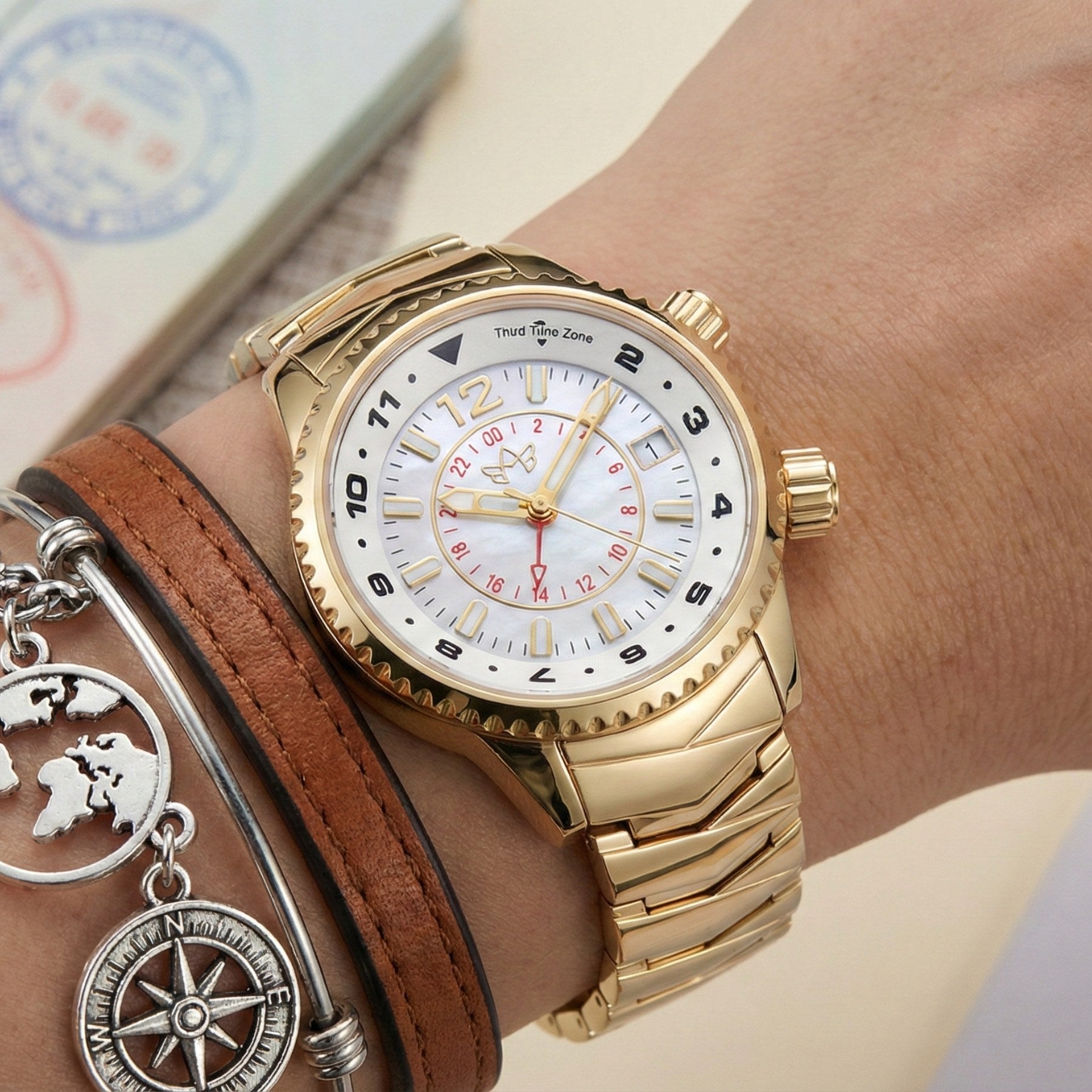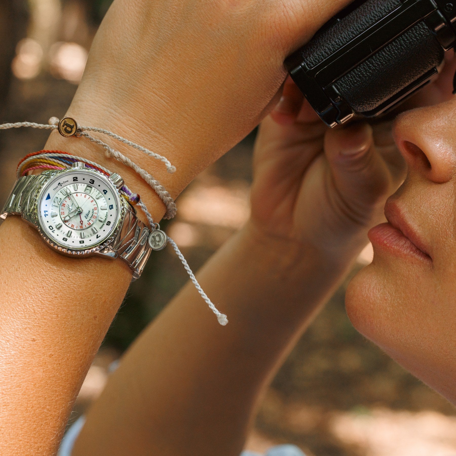 If you think in timezones instead of zip codes, Elise is your new best friend. She travels well and fits seamlessly into every setting. Thoughtful and dependable, Elise supports whatever the day brings—from early departures to late arrivals. You wear it because its three timezone display keeps you on track wherever you are in the world.